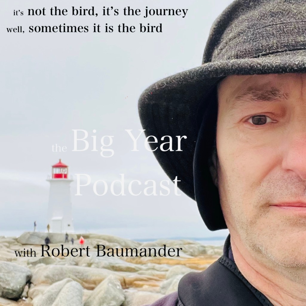 Hello, I’m Robert Baumander and I am a Big Year Birder. After seeing the movie, The Big Year 2012, I caught the birding bug and did an ABA Big Year having never before used binoculars. But before all that began, I was a magician, escape artist, photographer, balancer of rocks, pitchman of the Amazing Chamois, carnival barker, cyclist, and video coordinator for the Toronto Blue Jays Baseball Club for over 40 years. One of the Jays players once said, “You’re the “Dos Equis” guy.” I wouldn’t go that far, but I did a lot before my passion for birding took over my life. Now, in addition to birding nearly every day of the year, I host The Big Year Podcast and am working on my book, The Trans-Canada Jay Highway, about my adventures birding across Canada during my 2022 Canada Big Year.